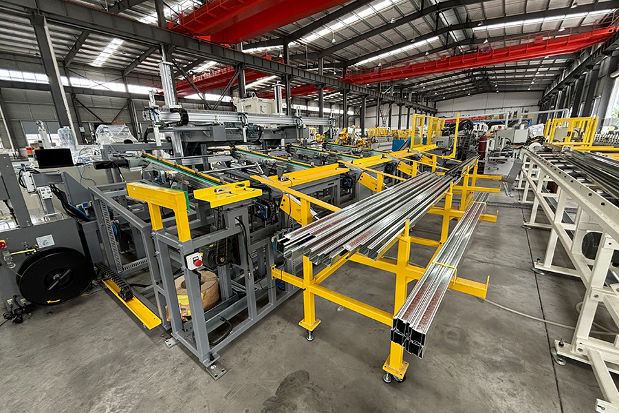 Home / Products / Drywall Profile Roll Forming Machine / Stud and track automatic change width height thickness roll forming machine with auto packing system